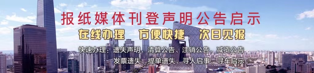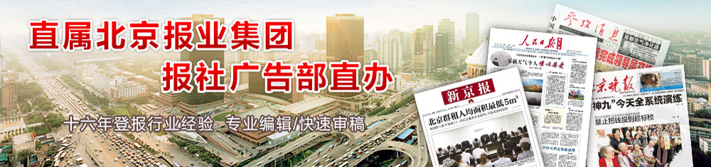 北京遺失聲明登報網隸屬于北京致融文化傳媒有限公司,整合的報紙包括《北京晚報》、《北京青年報》、《北京日報》、《北京晨報》、《京華時報》、《新京報》、《法制晚報》、《工人日報》、《人民日報》、《中國稅務報》、《中華工商時報》等各大省、市級報紙。專業為京城各企、事業單位及個人辦理遺失聲明、注銷公告、減資公告、清算公告、拍賣公告、證件掛失登報、法院公告、股權轉讓、變更公告、上市公告、尋人尋物啟事等聲明、公告類廣告登報。為方便客戶,我們不僅免費提供幾百種個人或者公司證件的登報聲明格式查詢,為客戶一站式解決證件遺失登報聲明公告方案,我們的服務原則是滿意為